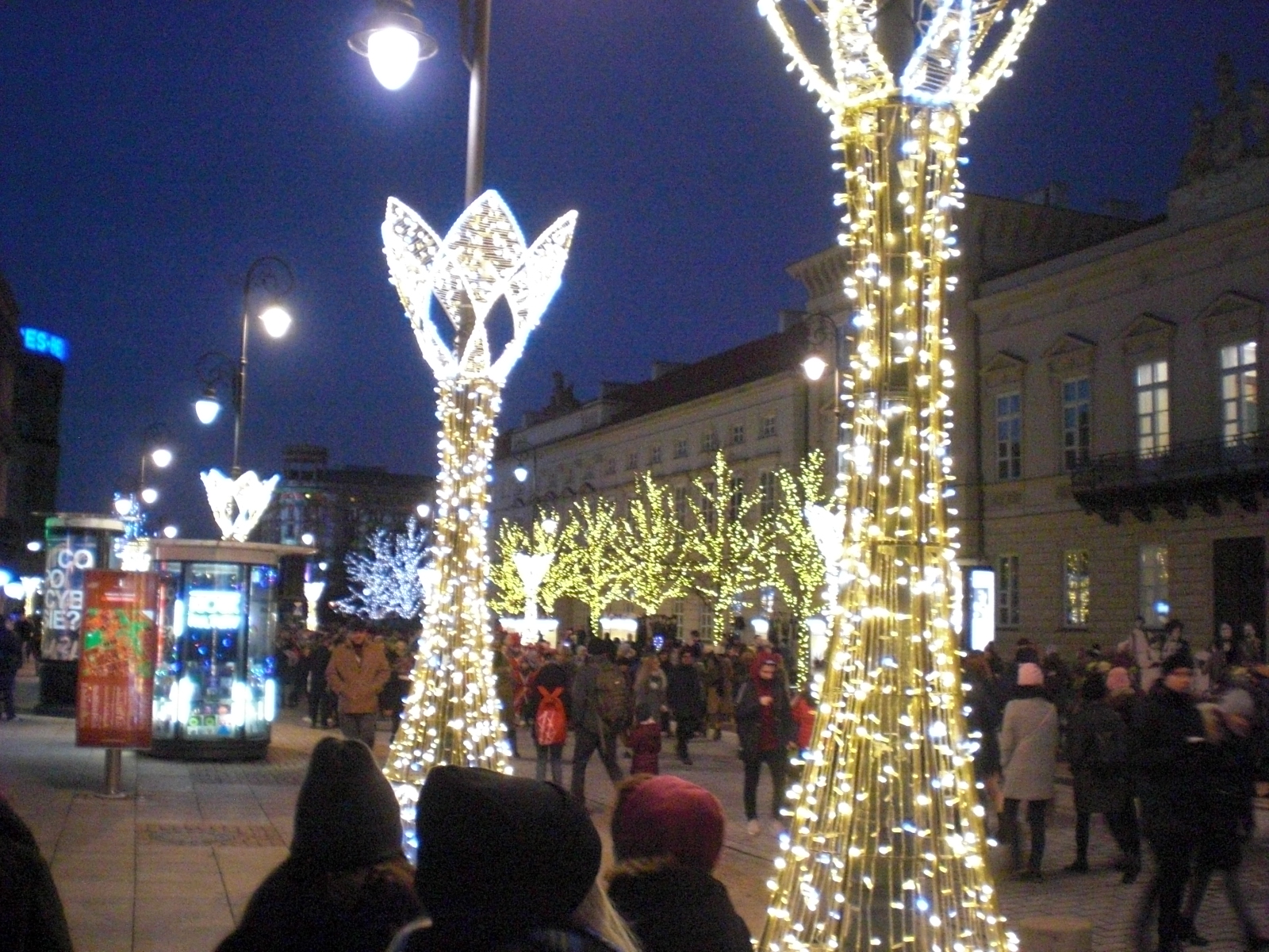 Der Startschuss fiel etwas spät: erst am achten Dezember war alles erleuchtet und hatte geöffnet. Doch die Stadt lässt sich nicht lumpen. Unzählige Lichtinstallationen, kleine Weihnachtsmärkte und Eislaufbahnen zeichnen das Stadtbild von Warschau neu.